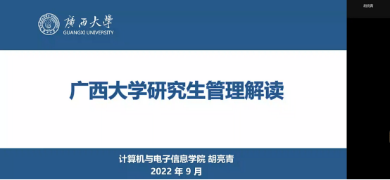 2022年9月9日晚上18:30,学院2022级研究生线上班会如期召开。本次新生见面会由学院团委副书记杨洋老师主持。