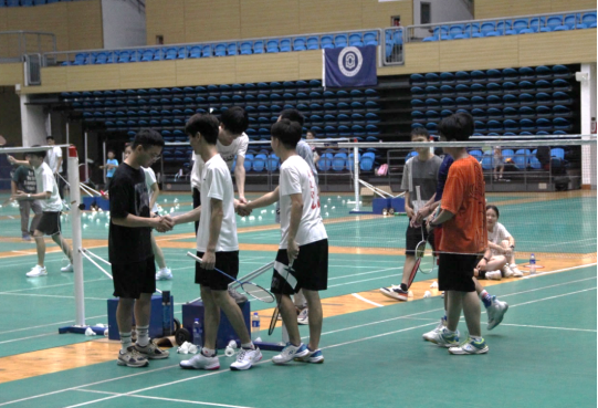 研究生羽毛球赛参赛选手与裁判握手