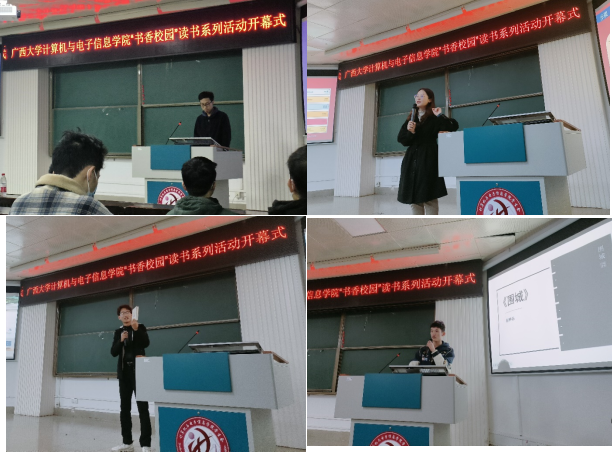 首先进行“书角沙龙”读书分享会,计算机类212班刘浩然、计科204班黄茜、计算机214班李天乐等同学先后分享了读书体会。