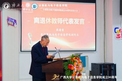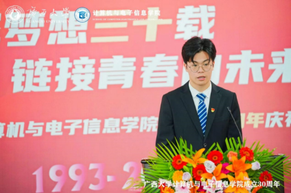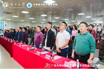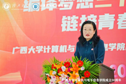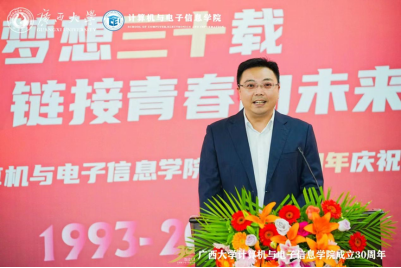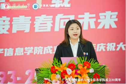 源于1993年原数学系的计算机软件专业与原电气工程系的计算机及应用专业合并组建的计算机科学系。学院坚持立德树人根本任务,以科技创新为动力,以服务社会为己任,为广西乃至全国的计算机与电子信息领域培养了大量的优秀人才。学院在学科建设、师资队伍、科研成果、社会服务等方面取得了显著成绩,为推动地方经济和行业发展作出了积极贡献。站在新的历史起点上,希望学院传承和发扬优良的办学传统,深入学习贯彻党的二十大精神,坚持用习近平新时代中国特色社会主义思想铸魂育人;希望学院加快学科内涵发展,在学科平台、人才队伍、研究方向、社会服务等方面加强规划和凝练特色,不断提升第三方学科评价结果;希望学院加强国际交流与合作,拓展国际视野,积极开拓与东盟国家高校在人才培养、科研合作等方面的交流合作,推进建设服务面向东盟开放合作的人才培养基地,为推动“一带一路”和中国-东盟战略伙伴关系作出贡献。