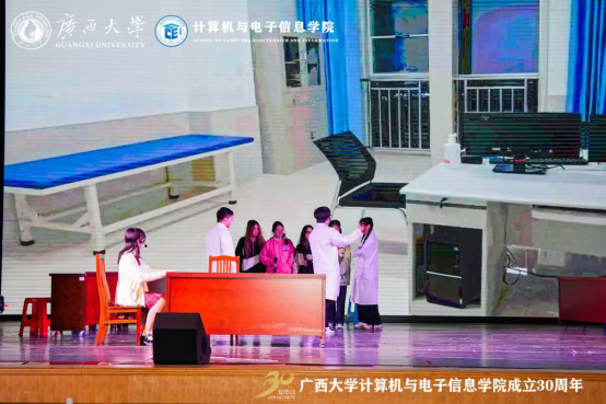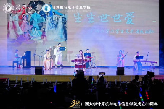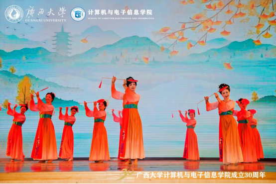 领导、师生和校友代表欢聚一堂,在精彩的文艺表演中共同庆祝学院成立30周年。