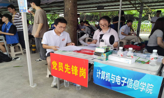 在学院的迎新点中,“党员先锋岗”格外引人注目,身穿院服、胸戴党员徽章的党员先锋志愿者们热情地为新生指引方向,积极主动地帮助新生搬运行李,耐心地引领新生办理报到手续并回答新生及家长提出的各种问题,忙而不乱,为新生提供热情周到的服务,不仅用实际行动生动诠释“奉献、友爱、互助、进步”的志愿精神,更是充分展现党员的担当,展示党员的风采,充分发挥党支部的战斗堡垒作用和党员先锋模范作用。