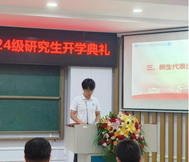 计算机科学与技术241班出君儒同学作为新生代表发言。他强调,作为研究生,面对新的挑战与不确定性,应该秉承初心,砥砺前行,钻研专业知识。他还分享自己过去一年在那坡县民族初级中学支教的经历,表示新时代青年要将自己的命运同国家民族的命运紧紧联系在一起,用自己的实际行动践行责任与担当!