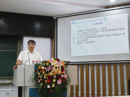 9月4日,学院党委副书记邓珍琪老师为新生作题为“树立崇高理想 争做共产党人”入党启蒙专题教育,帮助新生坚定理想信念,端正入党动机,积极向党组织靠拢。