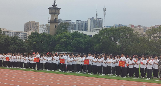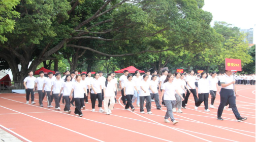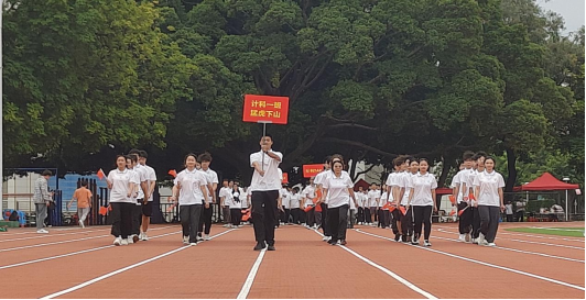 班级方阵依次入场,同学们目光坚定、口号响亮、气势如虹,尽显班级风采。