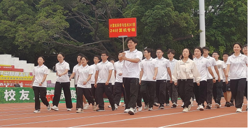 2024年运动会在西校园田径场顺利举行。学院党委书记赵进创教授、常务副院长张振荣教授、党委副书记邓珍琪老师、副院长郑嘉利教授以及辅导员和班主任出席开幕式。