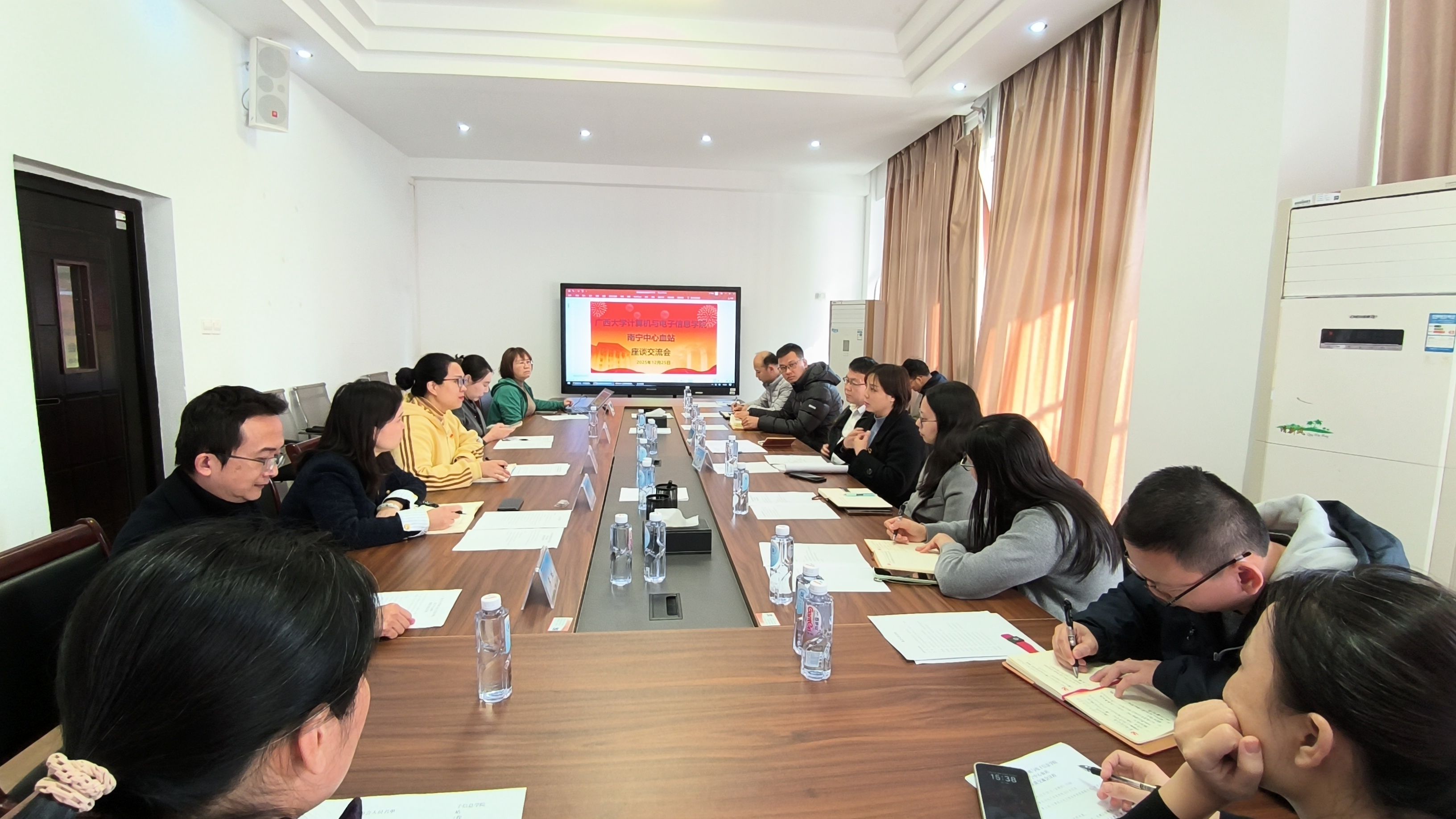 2025年12月25日下午,广西南宁市中心血站党委副书记、纪委书记刘闯,采血科科长苏曦一行13人到大象传媒