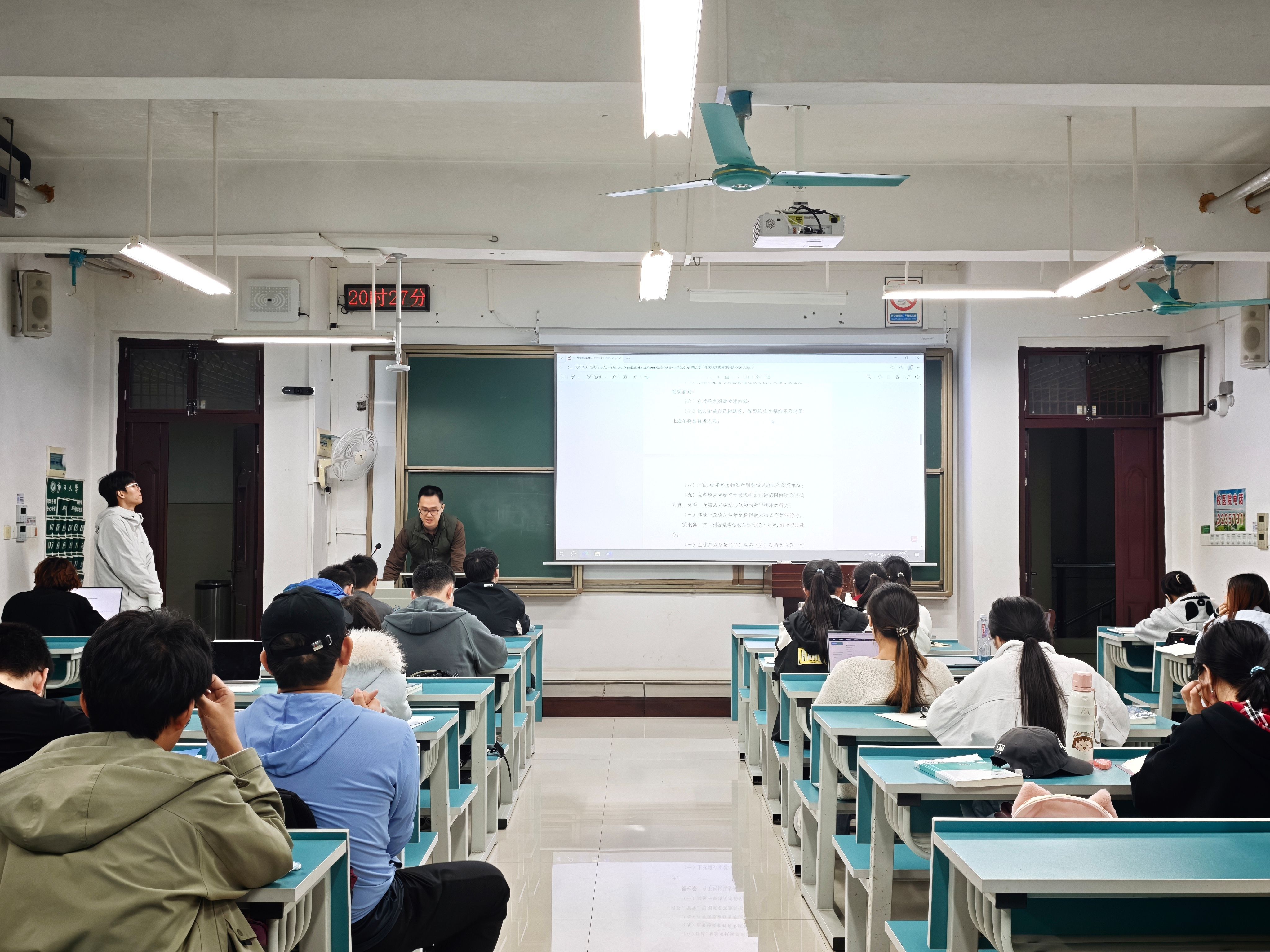 计科252班班主任刘志越老师在给同学们讲解课堂纪律和考试诚信