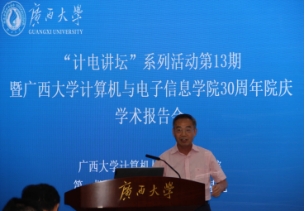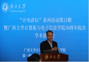 On the morning of November 18, 2023, the "Computer Science Lecture" series of activities - Expert Academic Report Meeting, jointly organized by the School of Computer and Electronic Information of Guangxi University, the Graduate Student Association of the School of Computer and Electronic Information of Guangxi University, and the CCF Guangxi University Student Branch of the Chinese Computer Society, was held in the second conference room of Junwu Academy. This event invited Professor Hao Peng from Zhejiang Normal University, Professor Rui Mao from Shenzhen University, Professor Gang Wang from Nankai University, and Professor Jigang Wu from Guangdong University of Technology to hold a wonderful expert academic presentation on topics such as "Advanced Technologies and Applications of Big Model Security", "Big Data Architecture: General Data Processing Mode for Measuring Space", "Research Progress on Hard Disk Fault Prediction in Data Centers", and "Software and Hardware Optimization Technology for Neural Network Computing". Professor Cheng Zhong from the college presided over the report meeting, and about 100 graduate students from the college attended.